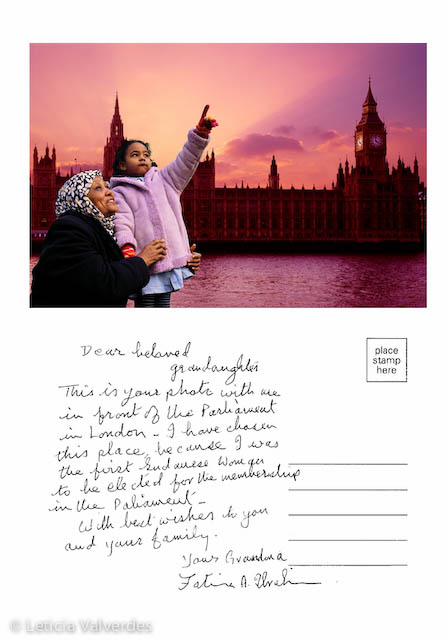 In this project London sites are shown on postcards. However, unlike traditional postcards, the images include people in the foreground showing London’s diversity of cultures. The project explores ideas of citizenship and belonging. I invited a wide range of groups and individuals to take part, many of whom may not have visited the city’s tourist attractions before or crossed certain invisible boundaries of a big city.